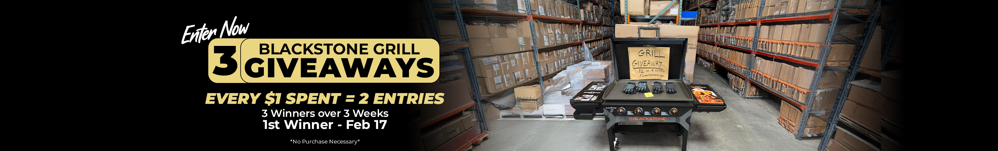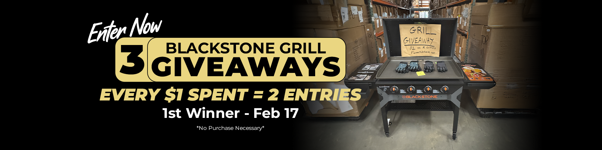 We’re giving back to the Farmers Defense community with a Blackstone Griddle giveaway. One grill goes out every week for the next three weeks. Every $1 spent earns 2 entries automatically.